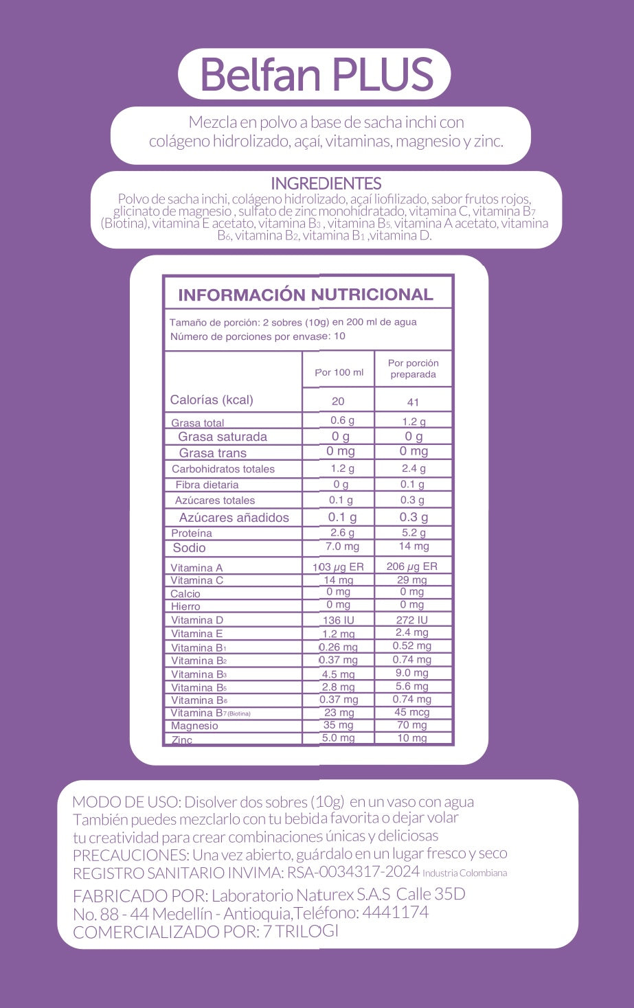 Colágeno Hidrolizado Belfan Caja Açaí x 20 Sobres