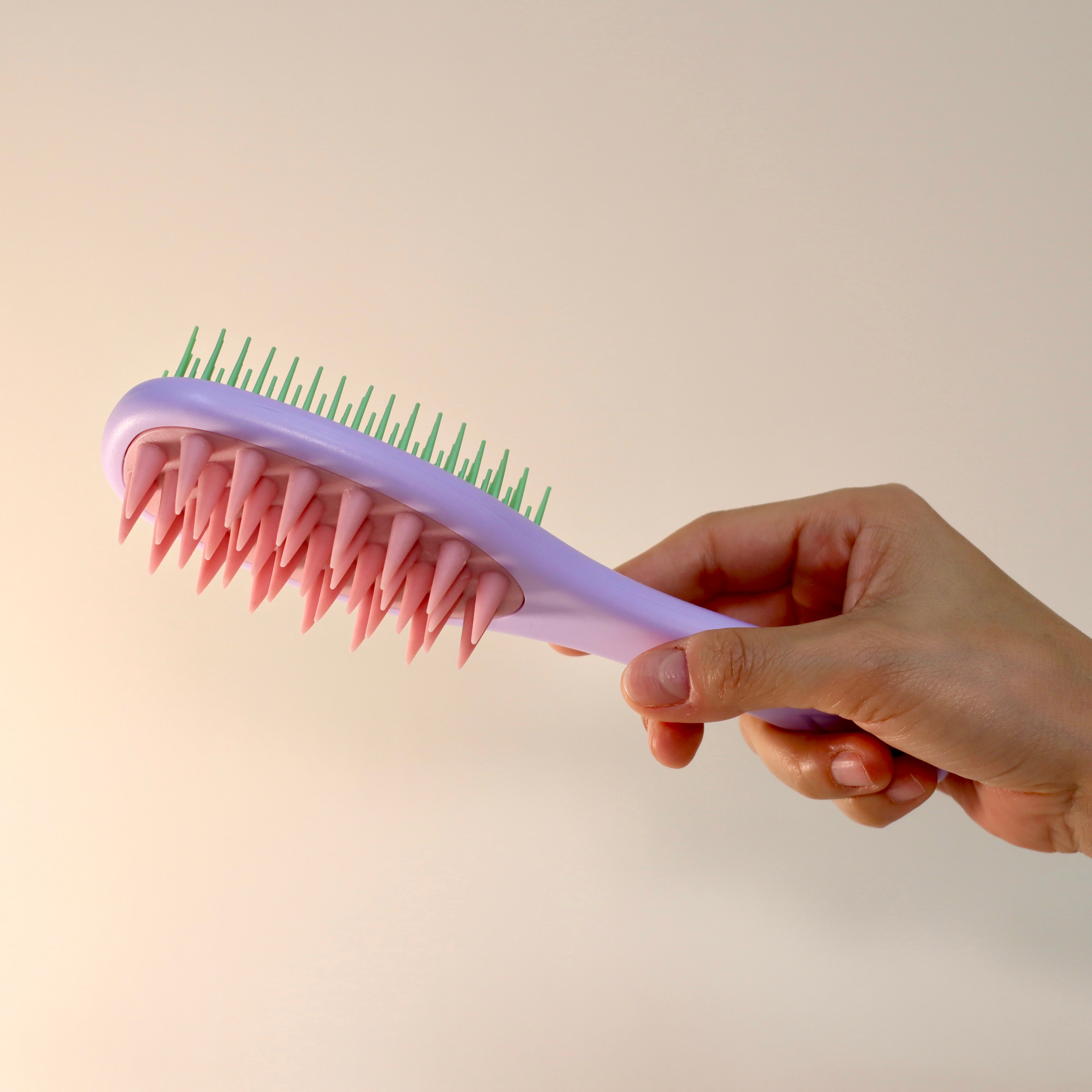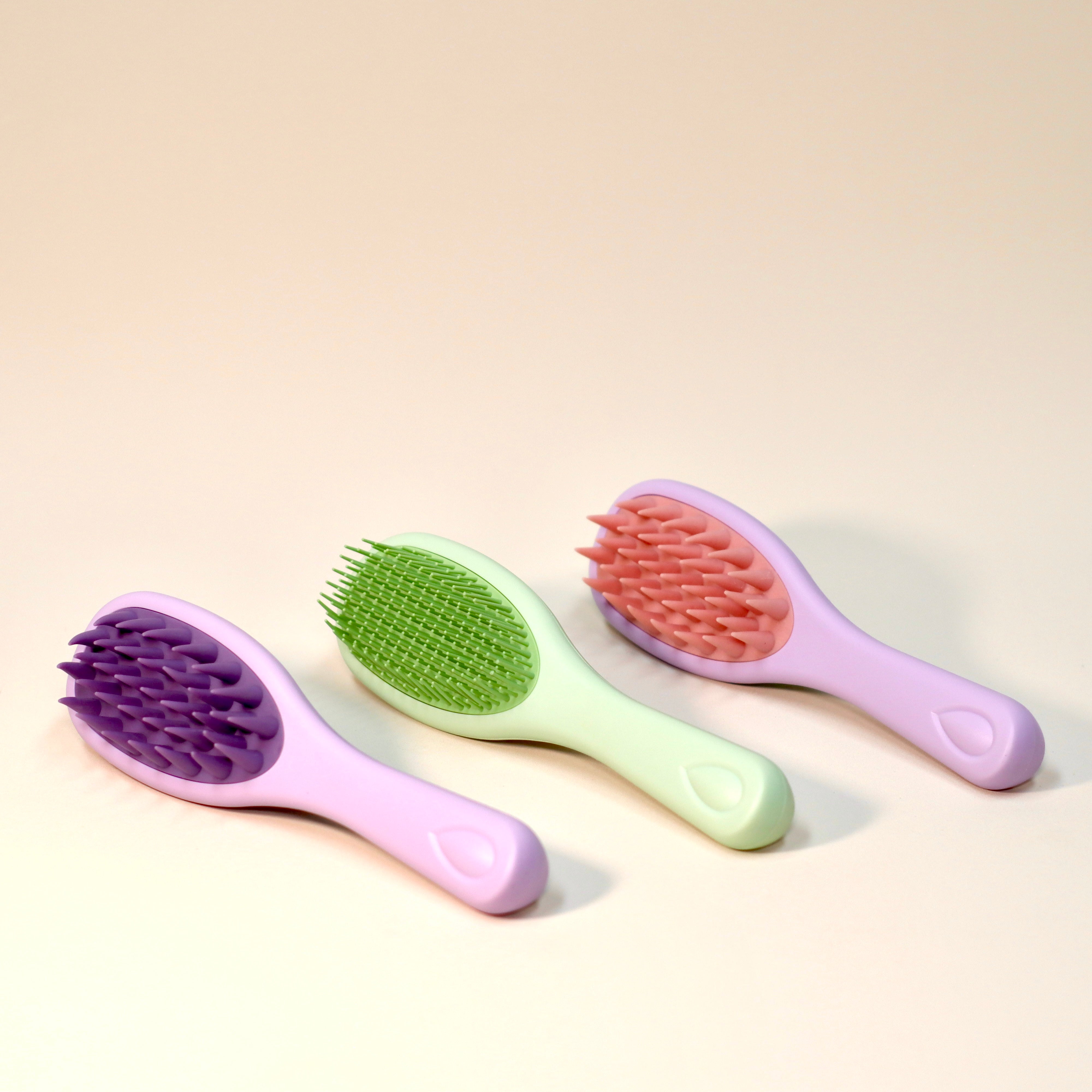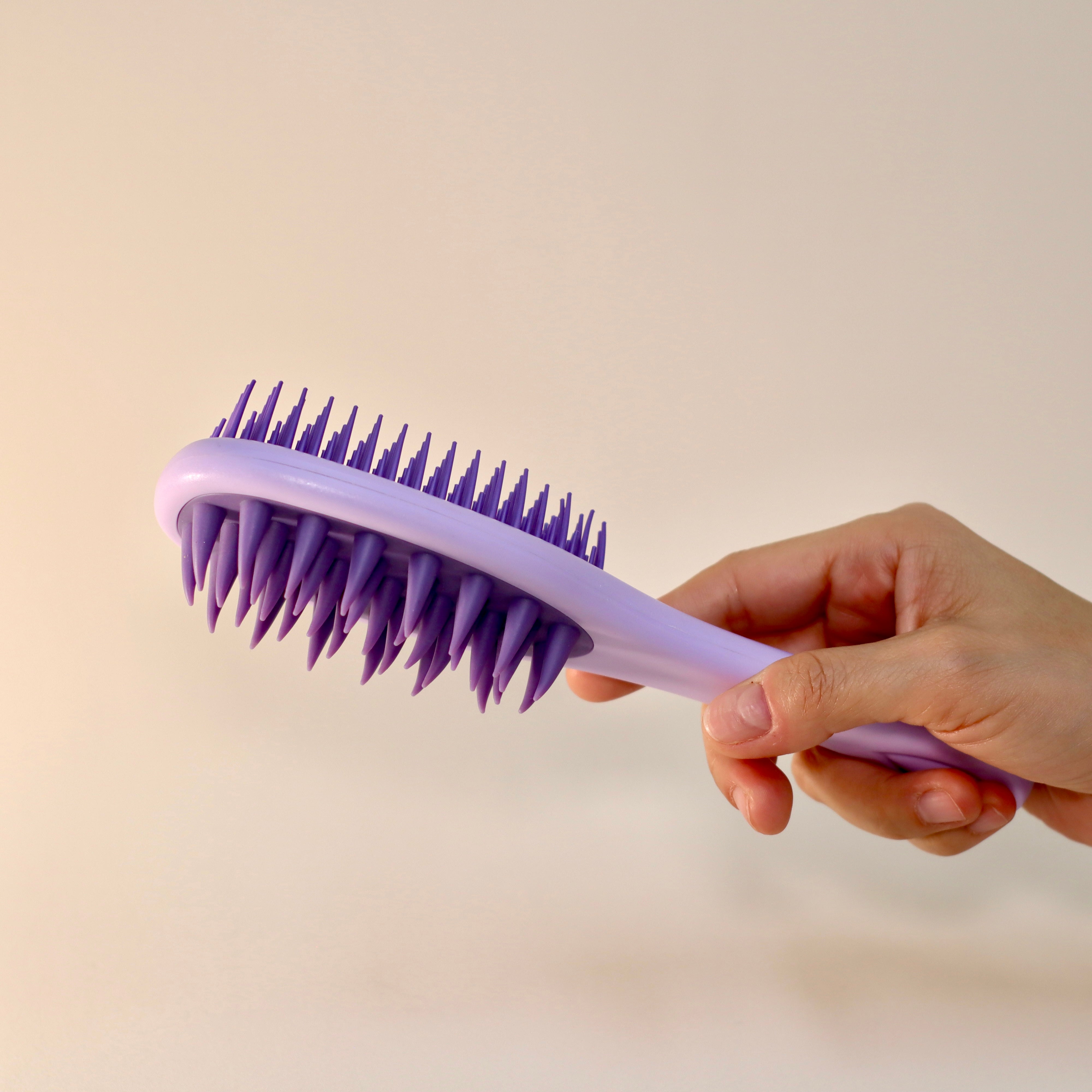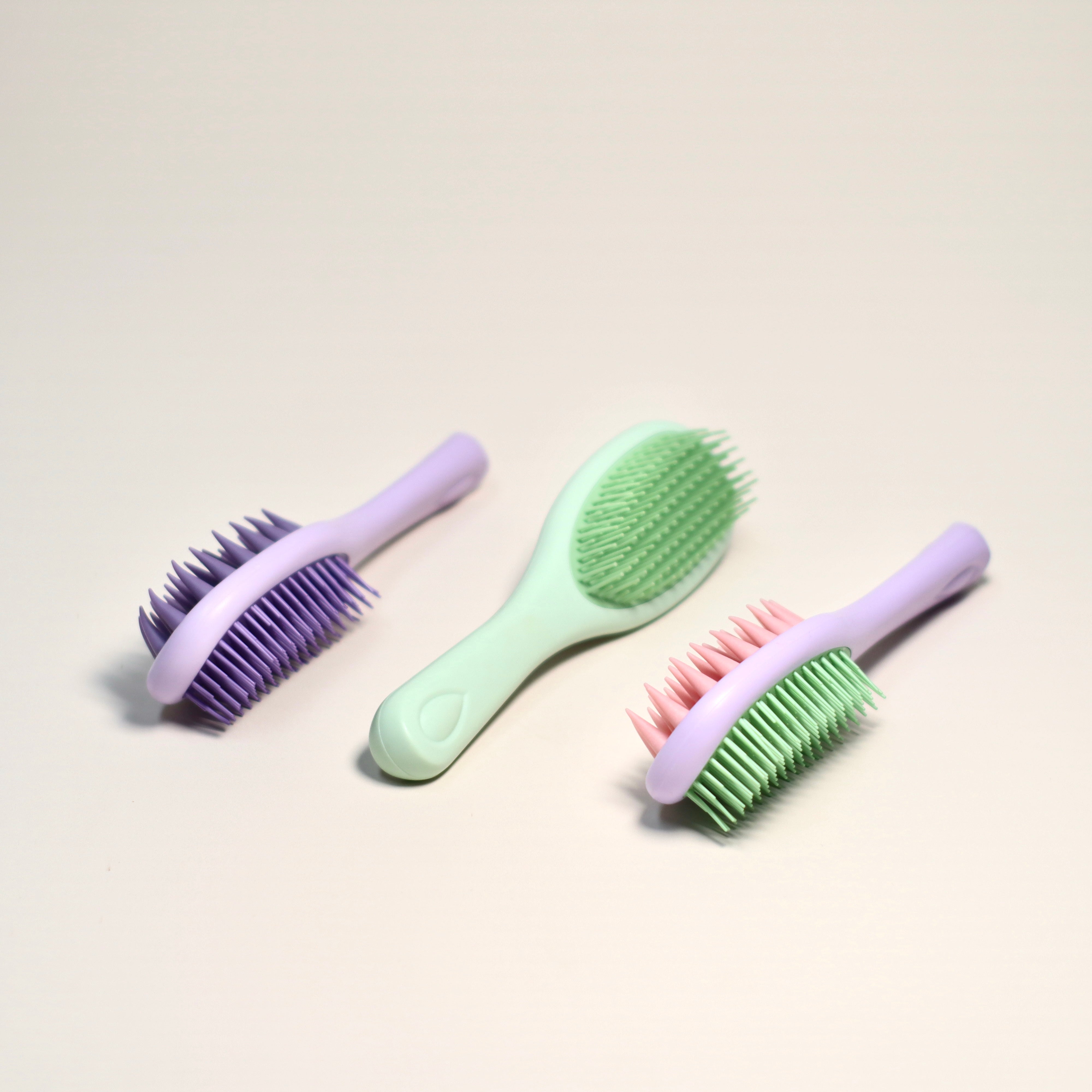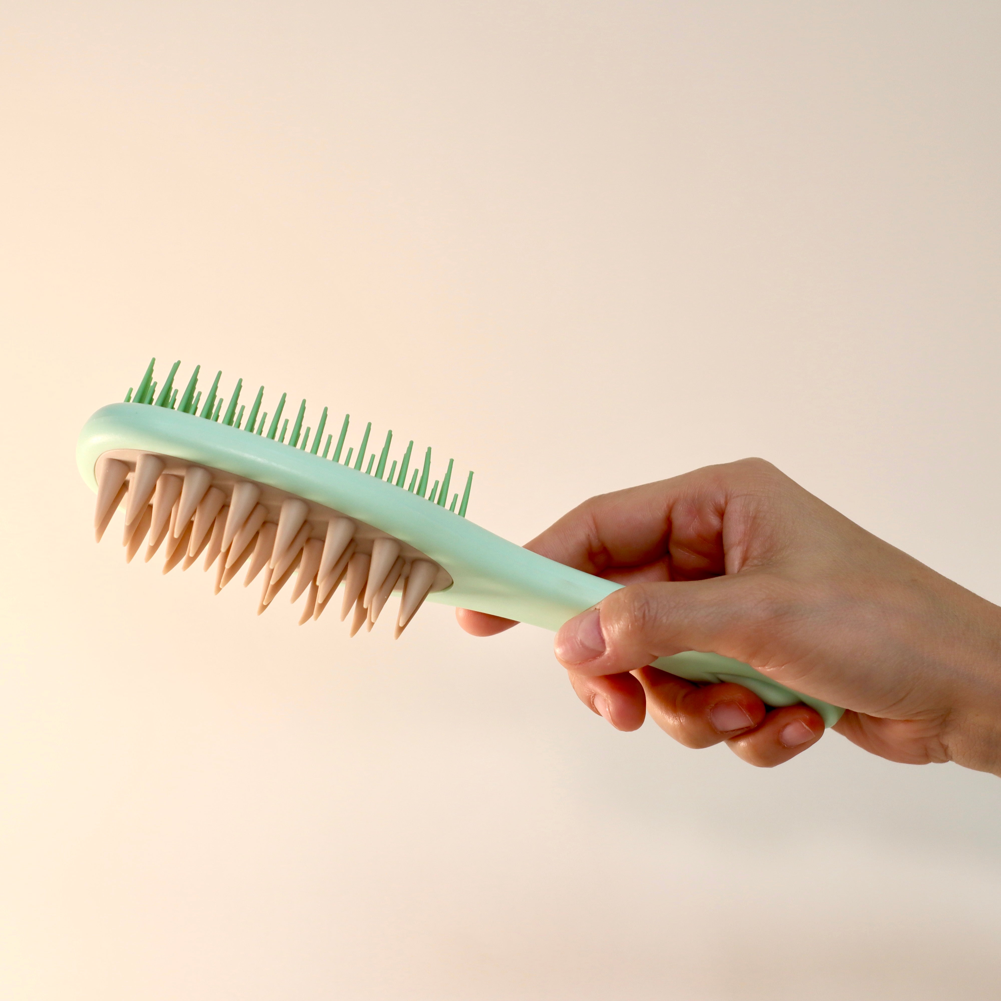 El Cepillo masajeador capilar de doble cara limpia en profundidad el cuero cabelludo, removiendo células muertas para descongestionar el folículo, favoreciendo su movilidad y creando una micro corriente generada por la fricción para estimular los folículos pilosos ayudando a producir más colágeno y aumentando la renovación celular