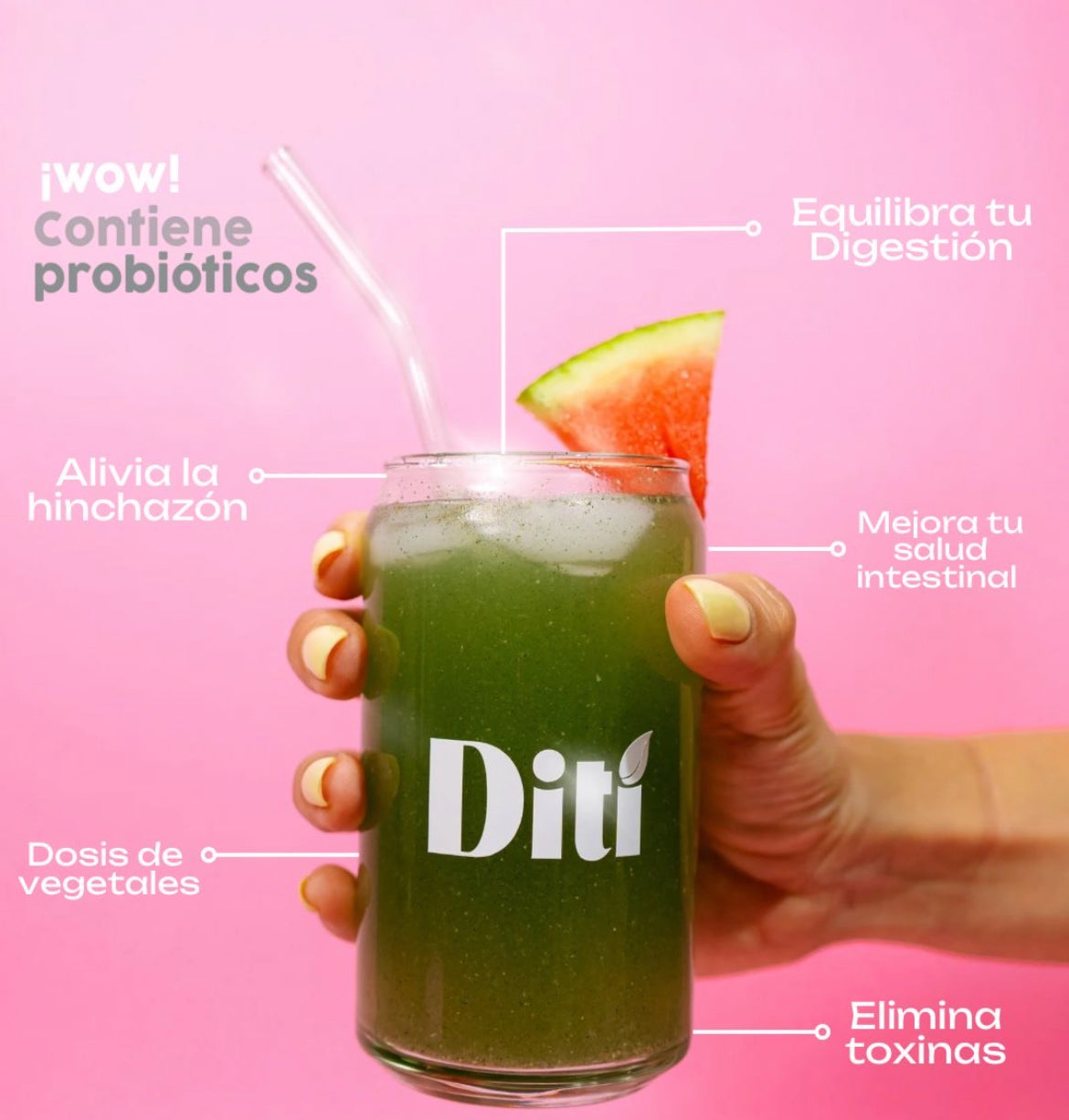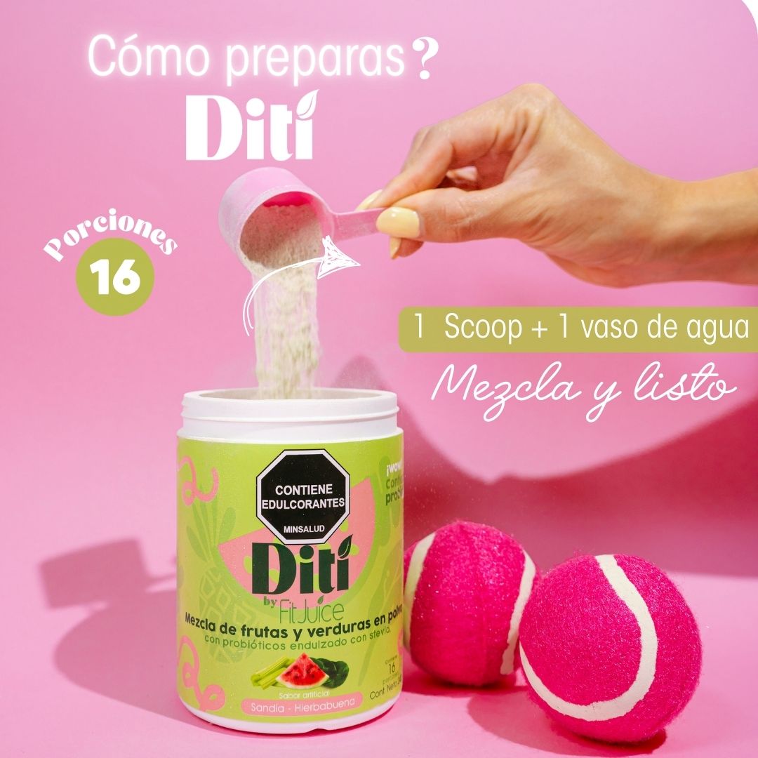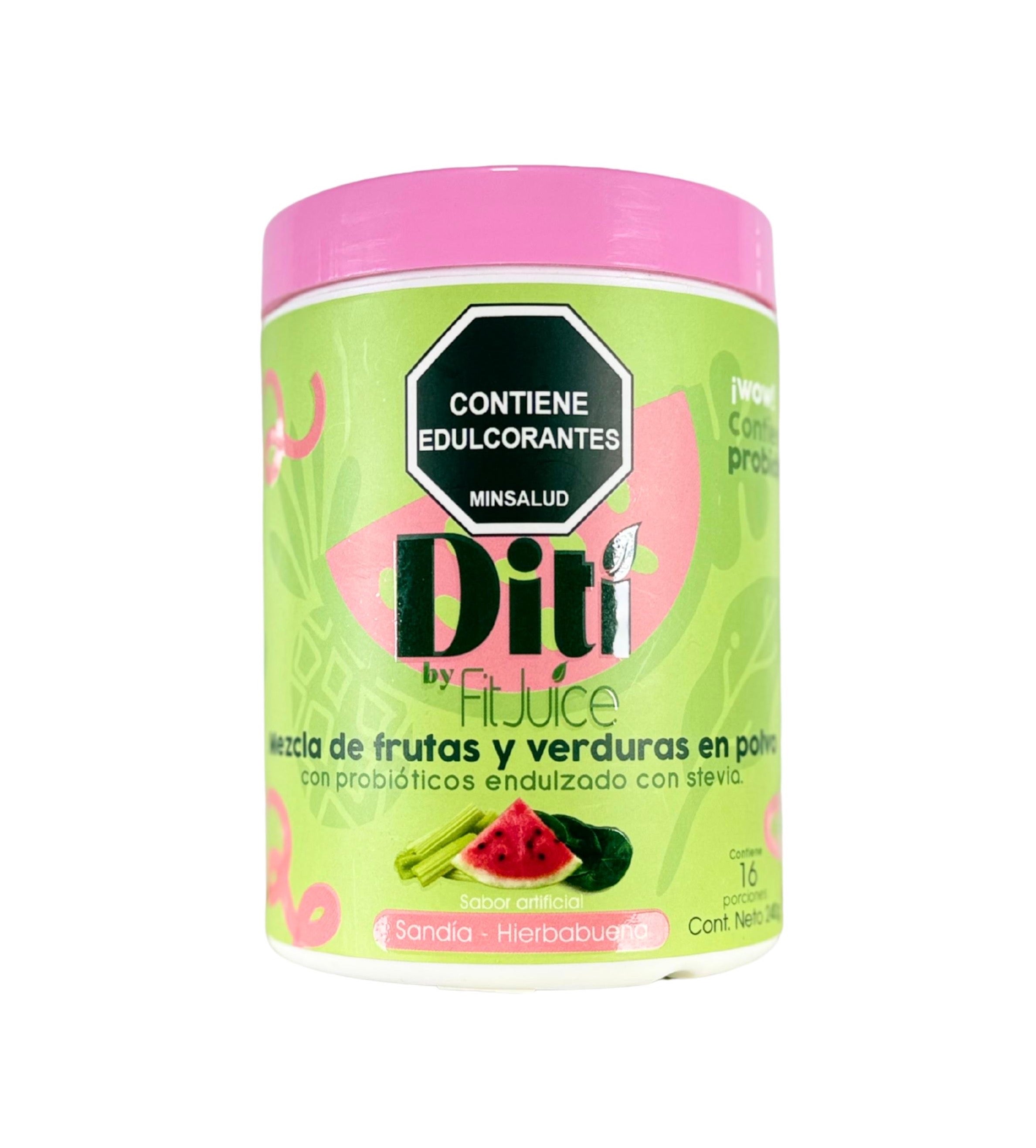 Mezcla en polvo de piña, limón, pepino, maca, espinaca, col rizada, apio, spirulina, psyllium con probióticos endulzado con stevia y sabor Sandía + Hierbabuena – Fresco y revitalizante